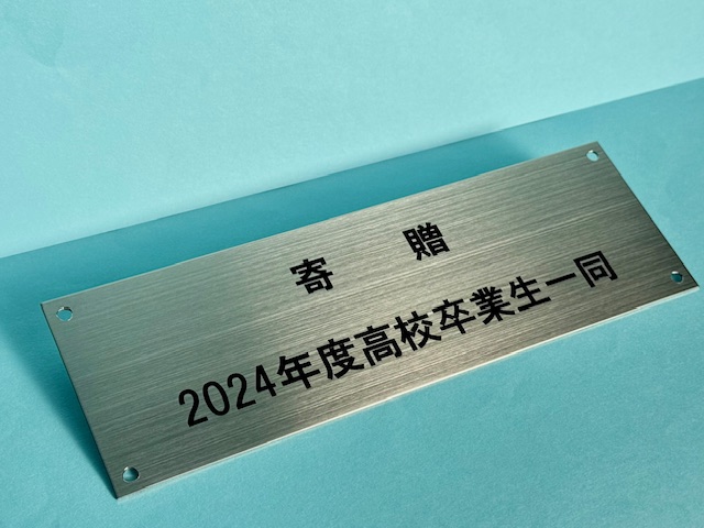 卒業記念品に取り付ける寄贈プレートです。