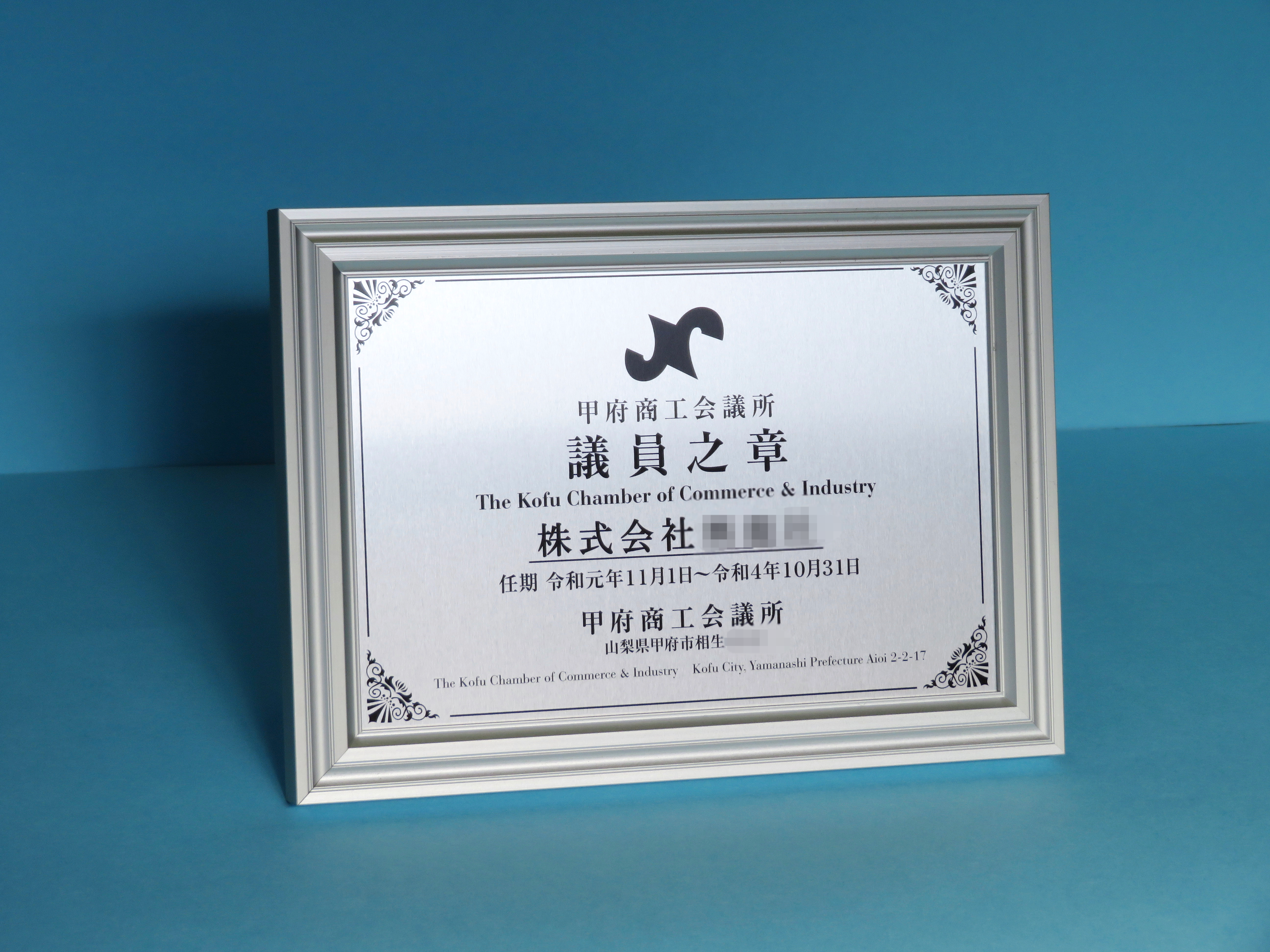 賞状プレート
