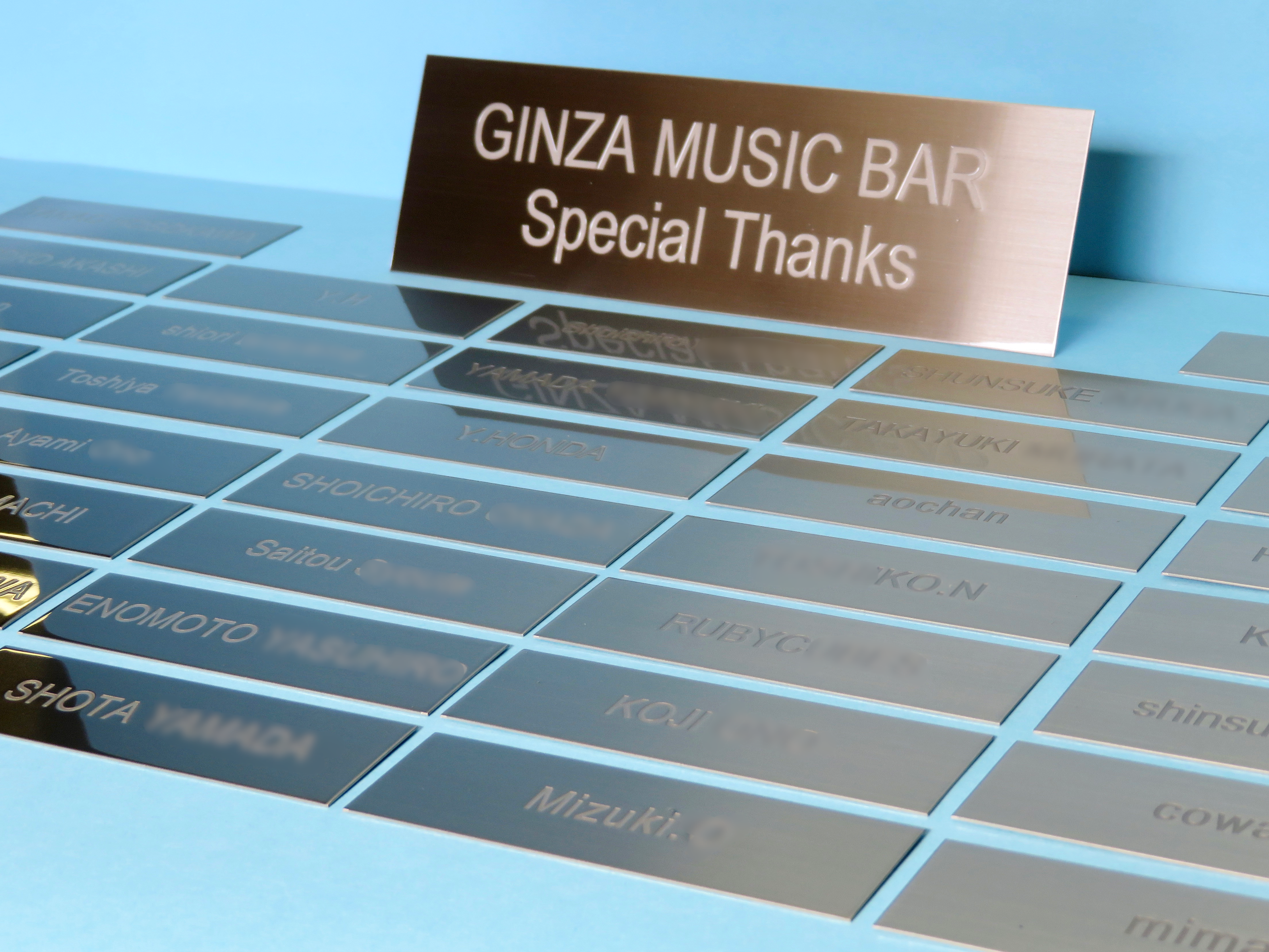クラウドファンディングを行った際に支援してくださった方の芳名プレートです。