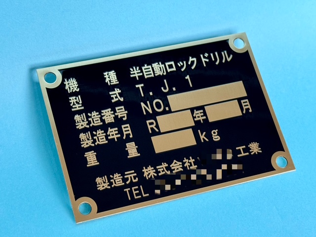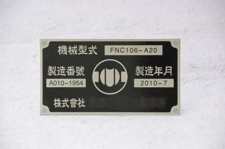 機械に取り付ける工業用銘板です。