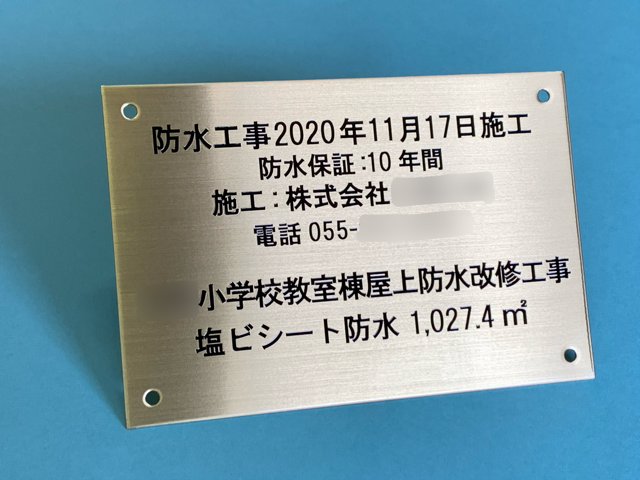 周年記念に製作したモニュメントに取り付けるタイトルプレートです。