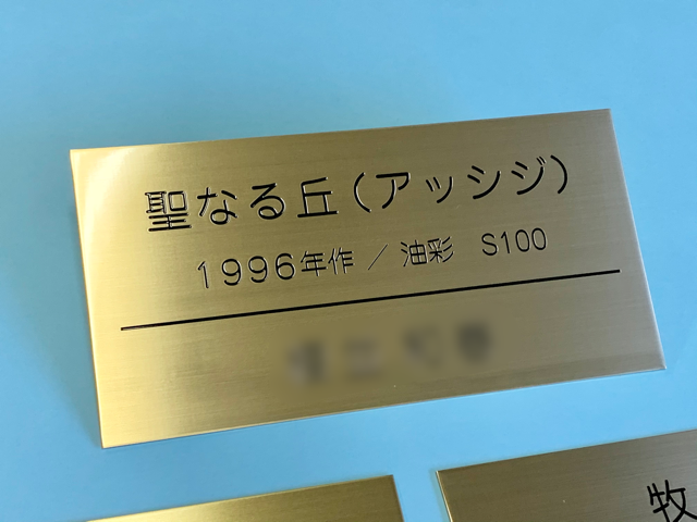 絵画に取り付けるタイトルプレートです。