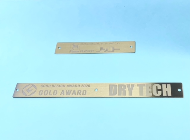 アルミ材をアルマイト処理後、2色で印刷を行い表面をクリアー塗装で仕上げました。