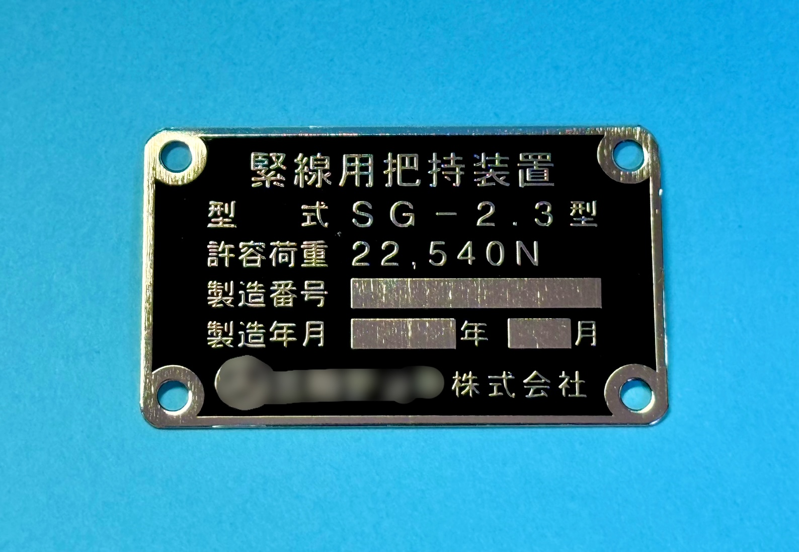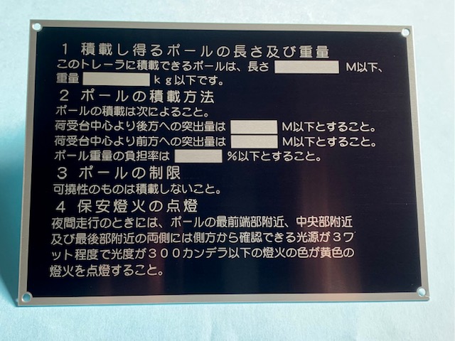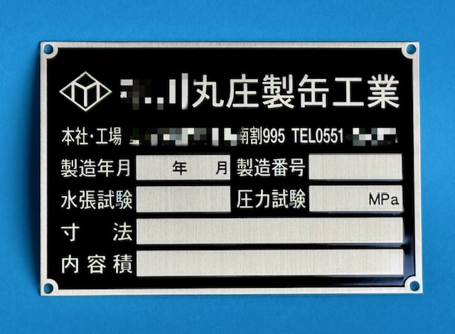 タンクに取り付ける工業用銘板です。