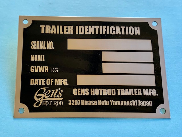 牽引用トレーラーの管理プレートです。