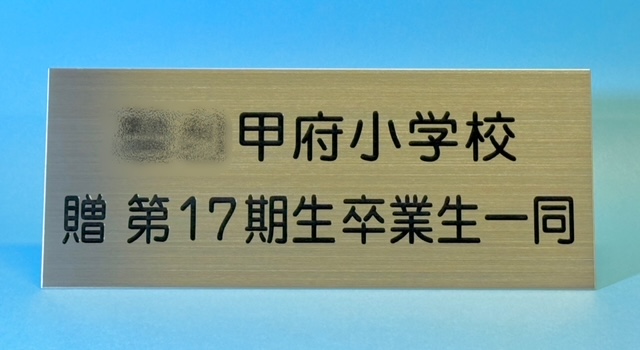 卒業記念品に取り付ける寄贈プレートです。