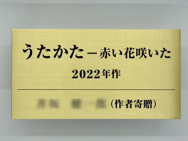 寄贈品に取り付けるタイトルプレートです。