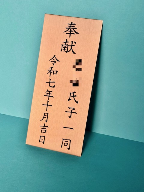 神社への奉献プレートです。