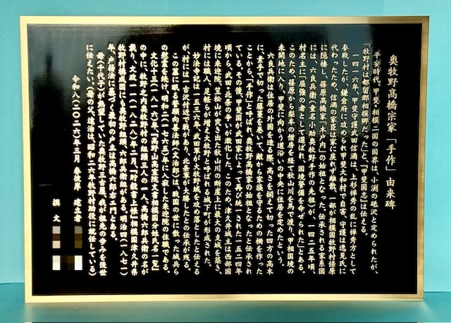 甲府の山崎石材工業所よりご注文いただきました由来碑です。