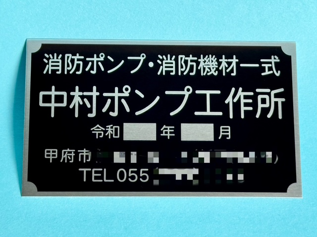 消防関係の機械等へ取り付けるプレートです。